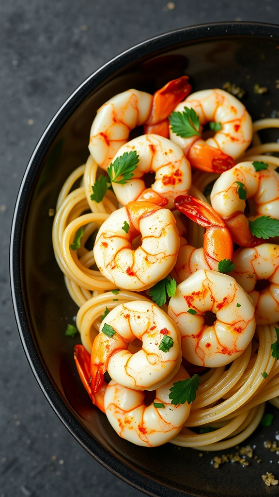 - Finish with Parsley: Remove from heat and stir in the fresh parsley before serving. Enjoy your spicy shrimp aglio e olio!