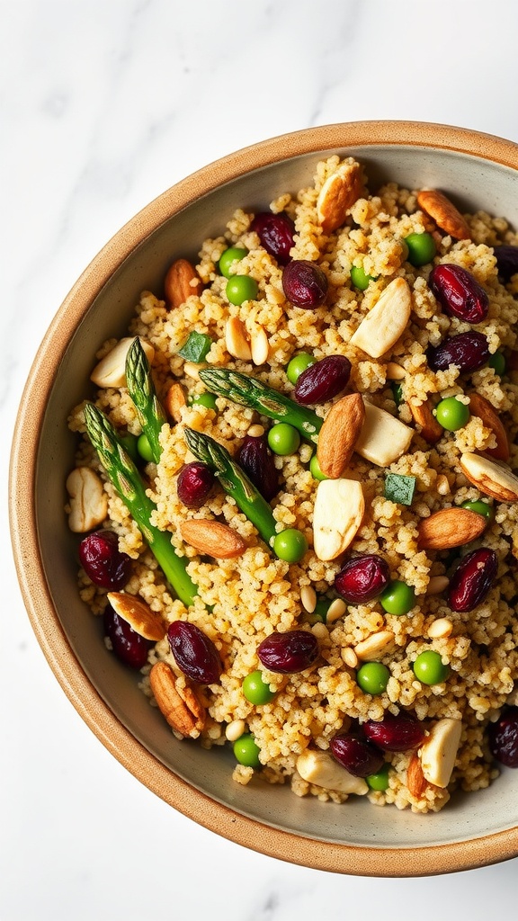 The combination of tender asparagus, crunchy nuts, and sweet dried cranberries adds a wonderful texture and flavor contrast. This dish is not just visually appealing but also packed with protein and fiber, ensuring a satisfying meal. Whether you’re serving it at a gathering or enjoying it solo, this pilaf is sure to impress!