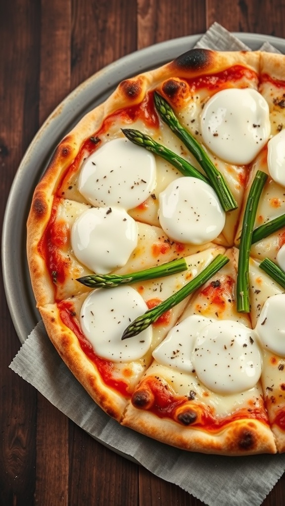 The combination of the lightly charred asparagus and melted mozzarella creates a wonderful balance of flavors. Each bite delivers a delightful crunch from the asparagus paired with the rich, gooey cheese, making it an enjoyable experience for your taste buds.