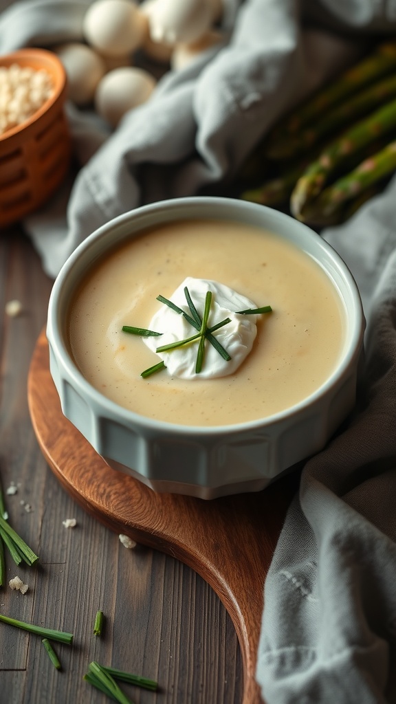 Asparagus soup is a delightful dish that showcases the fresh and vibrant flavors of asparagus. This creamy soup is rich and comforting, making it a lovely choice for a starter or a light meal. Its smooth texture paired with the tanginess of crème fraîche creates a delightful balance that appeals to many palates.