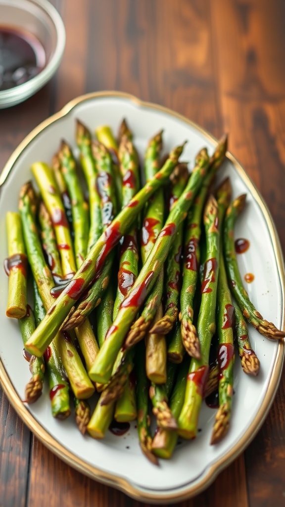 - Once the asparagus is done, drizzle the balsamic glaze over the top before serving. Enjoy your flavorful dish!