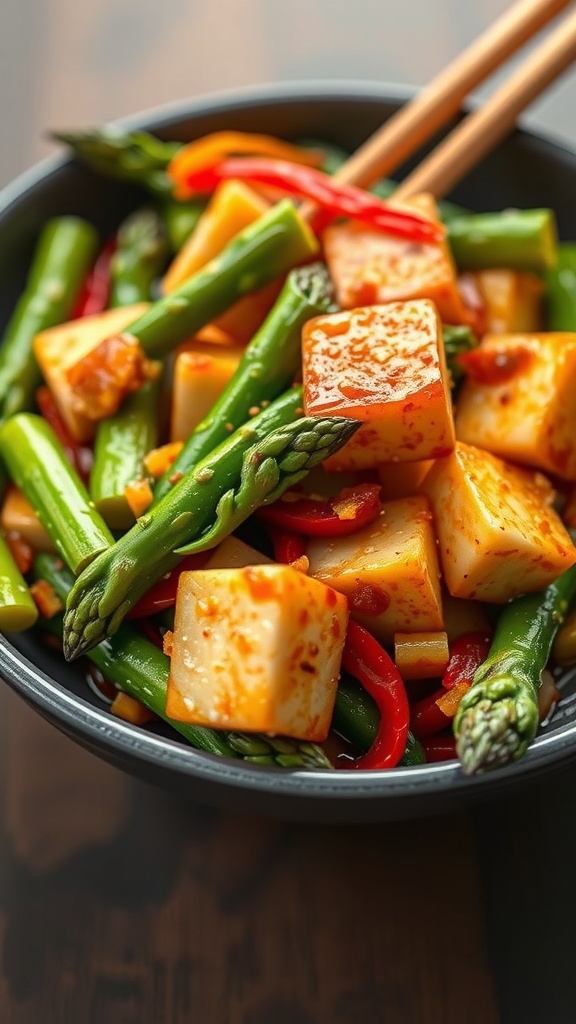 If you’re looking for a quick and delicious dish, stir-fried asparagus with tofu is a perfect choice. This vibrant recipe combines tender asparagus with crispy tofu and a colorful medley of bell peppers, creating a delightful balance of textures and flavors. The bright freshness of asparagus pairs beautifully with the savory notes of tofu, making it a satisfying yet light meal.