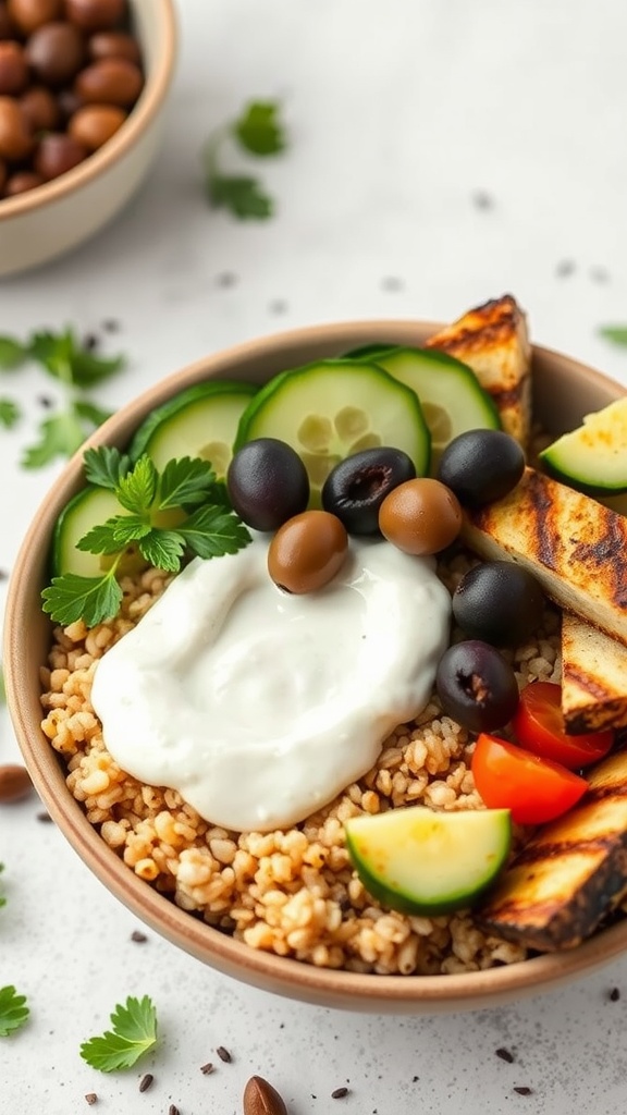 This recipe is easy to whip up and offers a wonderful balance of flavors. The combination of grilled vegetables, olives, and a creamy yogurt dressing creates a dish that’s as nutritious as it is delicious. Plus, you can customize it with your favorite toppings!