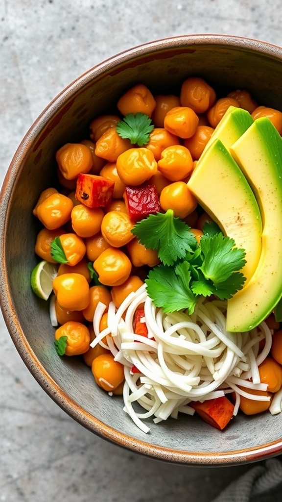 - Garnish with fresh cilantro and enjoy your Spicy Chickpea and Sweet Potato Bowl!