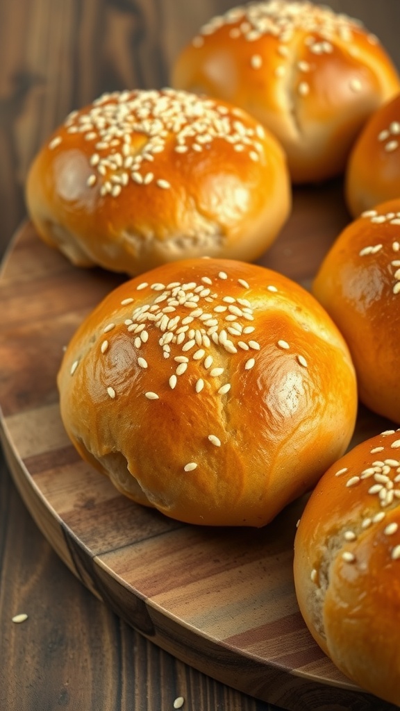 - Prepare for Baking: Brush the tops of the buns with an egg wash (beaten egg mixed with a little water) and sprinkle sesame seeds on top.
