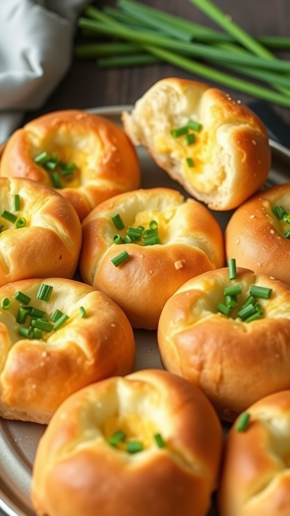 - Add Cheese and Chives: Once risen, flatten the dough and fold in the cheddar cheese and chives. Divide the dough into equal portions and shape into buns.