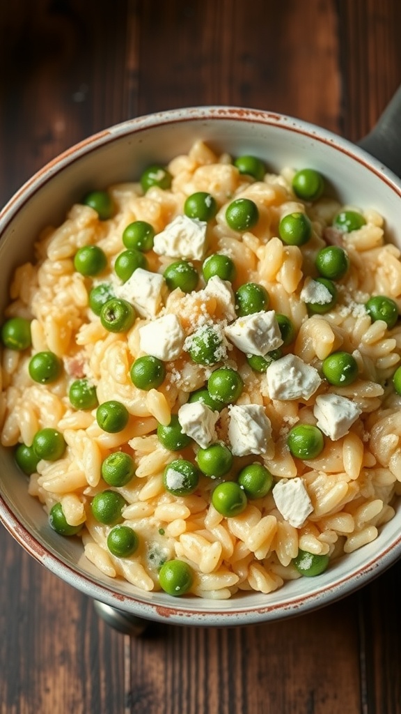 This dish is not only tasty but also offers a good source of protein thanks to the cottage cheese. The creamy consistency pairs wonderfully with the vibrant green peas, adding a splash of color and flavor. Whether enjoyed on its own or as a side dish, this risotto is sure to please.