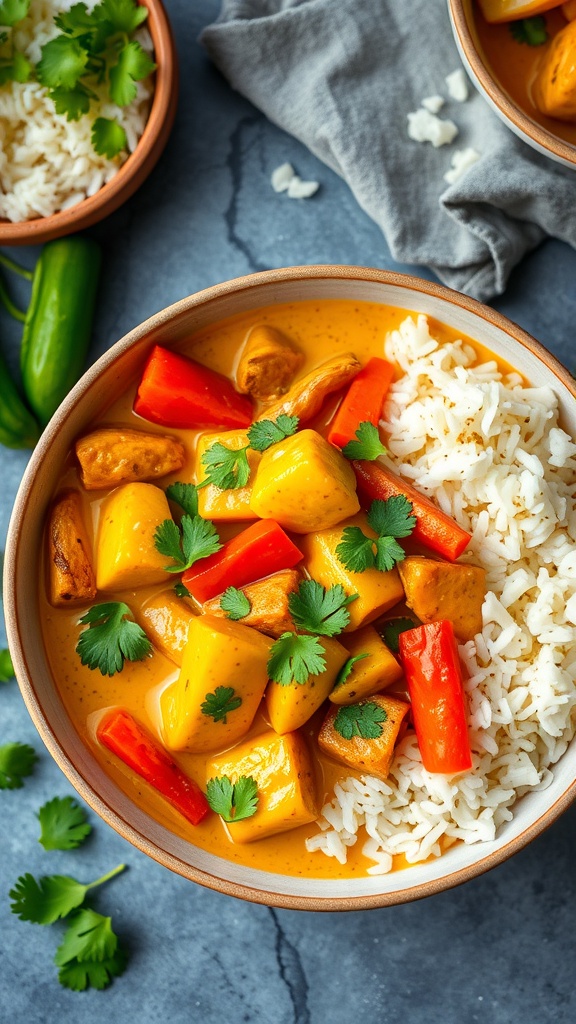 This creamy coconut curry chicken is a delightful dish that brings warmth and comfort to any meal. The vibrant colors of the peppers and the rich, golden sauce make it not just tasty but also visually appealing. Served over fluffy rice, it’s a perfect combination that everyone will love.