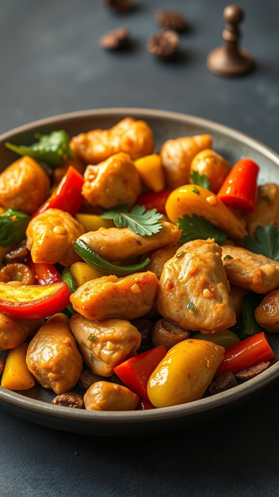 This Garlic Ginger Curry Chicken Stir-Fry is a delightful dish that combines tender chicken with vibrant vegetables. The colors of the bell peppers and the freshness of the cilantro make it visually appealing. The garlic and ginger add a fragrant aroma that will fill your kitchen, making it hard to resist.