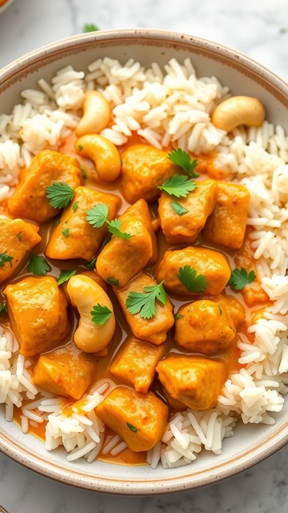 Mango Curry Chicken is a delightful dish that combines tender chicken pieces with the sweetness of mango and the warmth of curry spices. The vibrant colors in the image showcase the rich orange sauce, which is both inviting and appetizing. The addition of fresh cilantro not only adds a pop of green but also enhances the dish’s flavor profile.