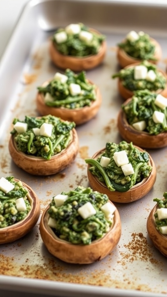 - Place the stuffed mushrooms on a baking sheet and bake for 20-25 minutes, or until the mushrooms are tender.