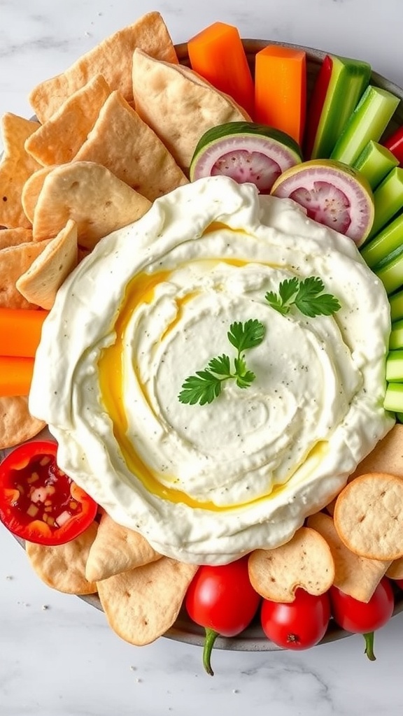 - Blend the Dip: In a food processor, combine feta cheese, Greek yogurt, olive oil, minced garlic, lemon juice, salt, and pepper. Blend until smooth and creamy.