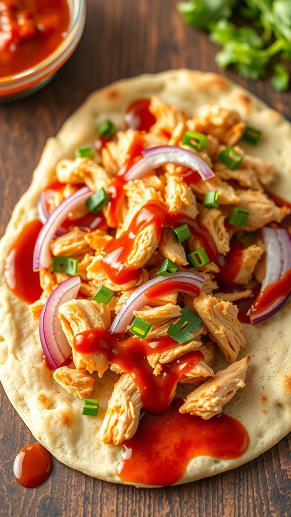 - In a bowl, mix the shredded chicken with BBQ sauce until well coated.