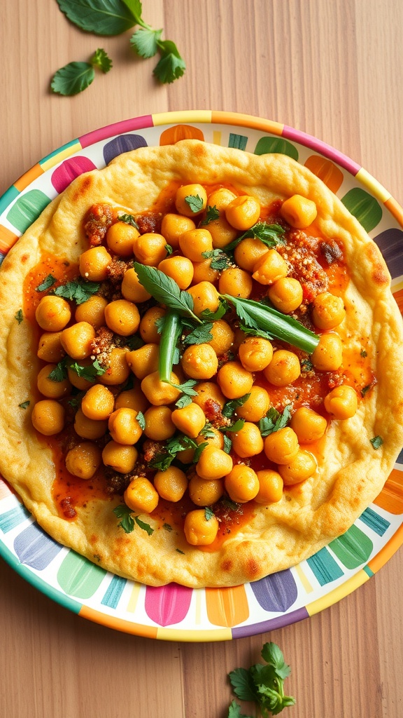 This spicy chickpea flatbread is a delightful dish that combines soft, warm flatbread with a zesty chickpea topping. The flatbread serves as a perfect base, while the chickpeas bring a burst of flavor and texture. Fresh herbs and spices elevate the dish, making it a great choice for lunch or dinner.
