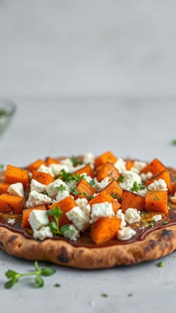 - Garnish with fresh herbs before serving. Enjoy your Sweet Potato and Feta Flatbread!