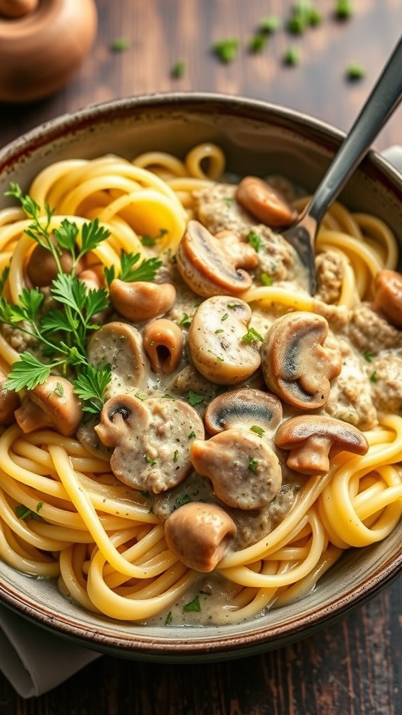 - Serve: Garnish with fresh parsley and enjoy your Chicken and Mushroom Stroganoff!