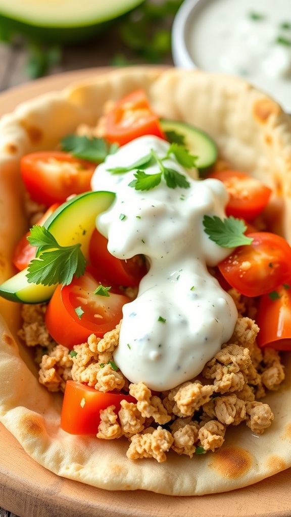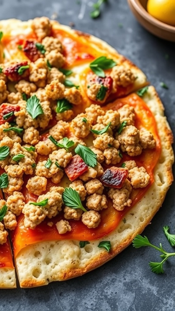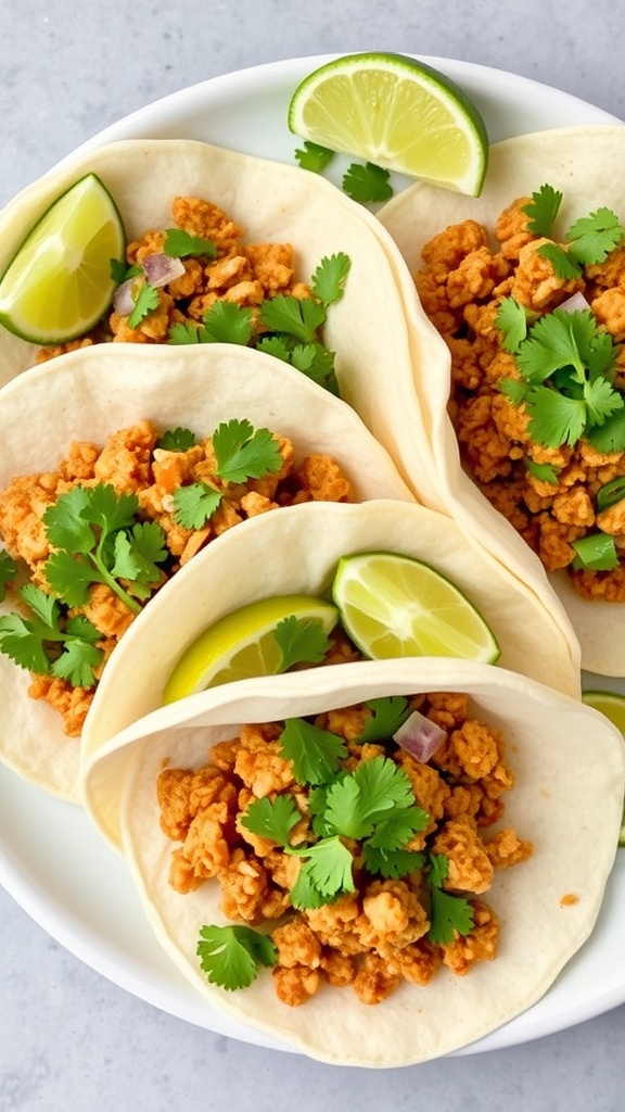 Ground chicken tacos are a fantastic way to enjoy a quick and tasty meal. The image shows soft tortillas filled with perfectly seasoned ground chicken, topped with fresh cilantro and lime wedges. This dish is colorful and inviting, making it perfect for any gathering or a simple weeknight dinner.