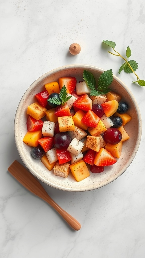 The addition of spices like cinnamon or a sprinkle of nutmeg elevates the salad, making it a delightful option for any occasion. Fresh mint leaves on top not only enhance the presentation but also add a refreshing aroma. This salad is perfect for warm days or as a light dessert after a hearty meal.