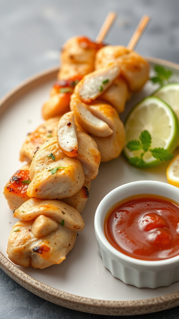 - Serve: Remove the skewers from the grill. Garnish with chopped parsley and serve with lemon wedges and the dipping sauce.