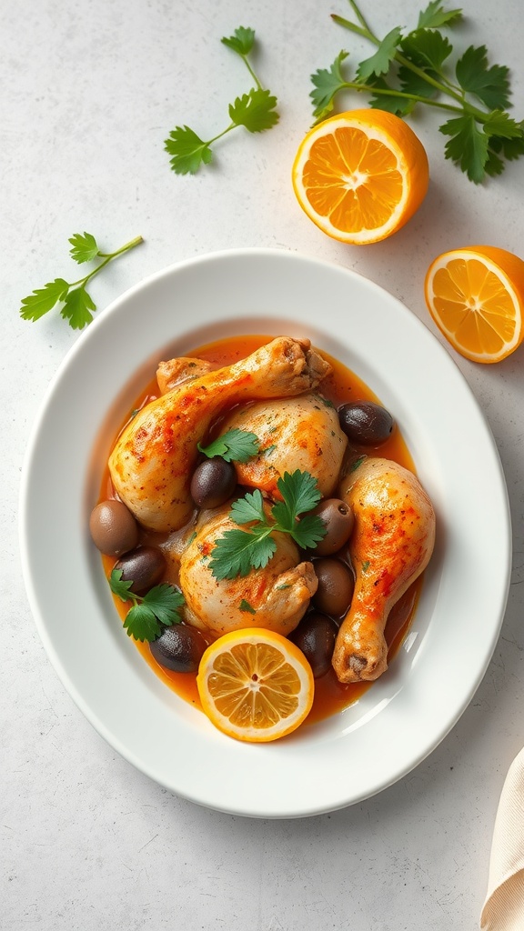 Saffron Infused Chicken with Olives is a classic Moroccan dish that brings together rich flavors and vibrant colors. The chicken is tender and juicy, infused with the unique taste of saffron, which adds a beautiful golden hue. The olives provide a salty contrast, making each bite a delightful experience.