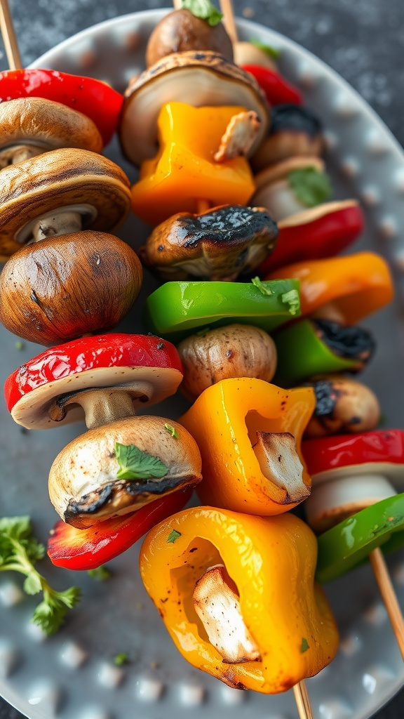 - Assemble the Skewers: Thread the marinated mushrooms and bell peppers onto skewers, alternating between the different colors.