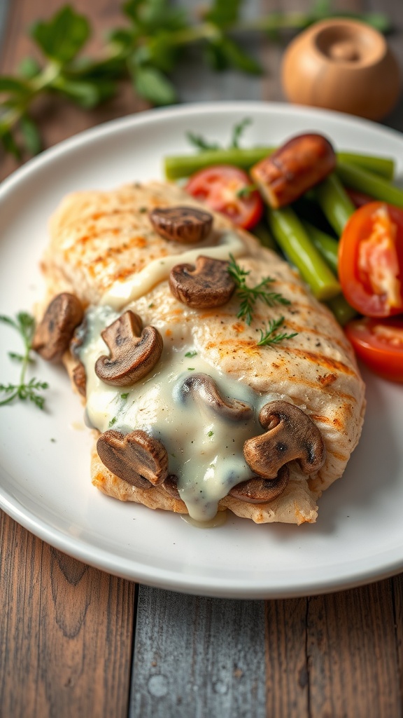The juicy chicken pairs wonderfully with the earthy taste of mushrooms and the creamy texture of melted cheese. With just a few ingredients and easy-to-follow steps, you can whip up this tasty dish in no time.