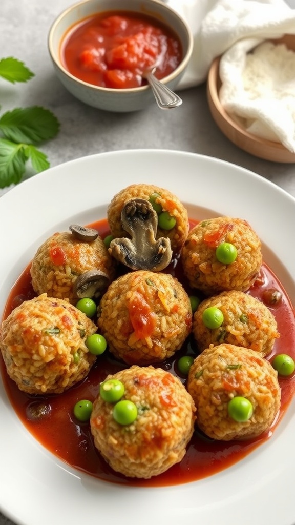 The combination of flavors in these risotto balls is sure to please everyone at the table. When you bite into one, you get a crispy exterior that gives way to soft, savory rice infused with mushrooms and peas. Serve them with a fresh marinara sauce for dipping to elevate the experience!