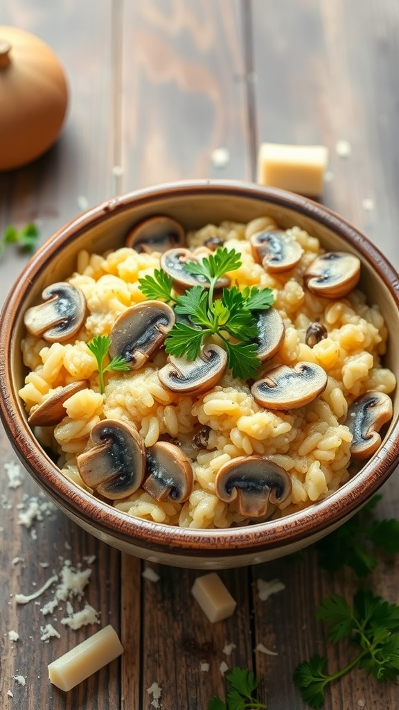 - Serve: Remove from heat, garnish with fresh parsley, and enjoy your creamy mushroom risotto!