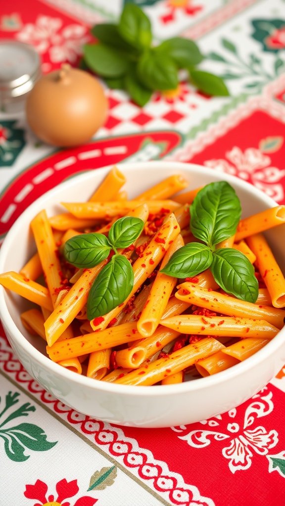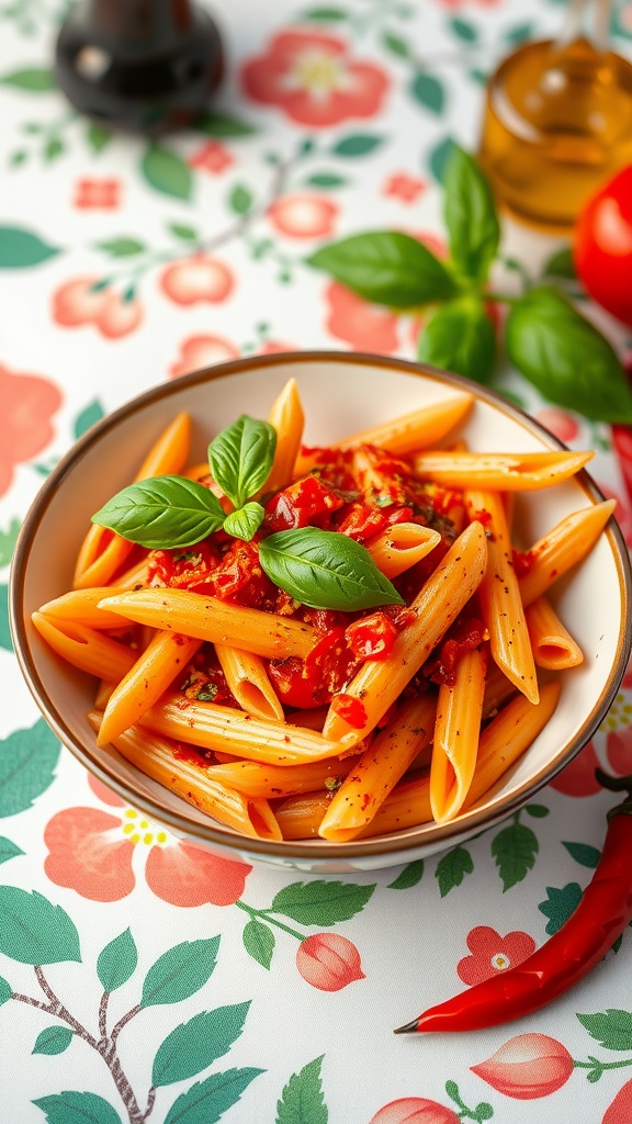 - Serve: Plate the pasta and garnish with fresh basil leaves. Enjoy your spicy meal!