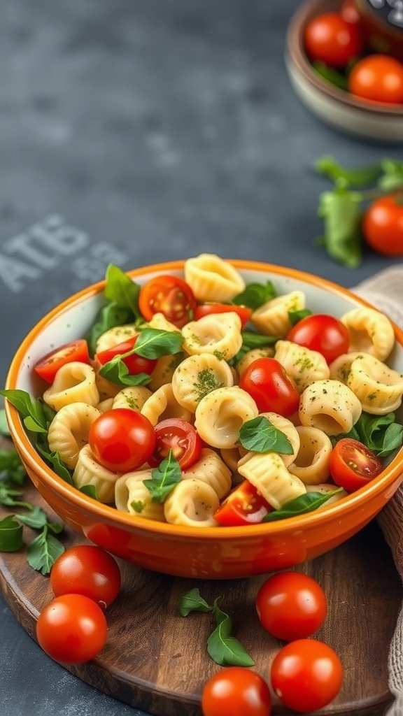 - Mix the Ingredients: In a large bowl, combine the cooled tortellini, halved cherry tomatoes, fresh spinach, and pesto. Toss until everything is well coated.