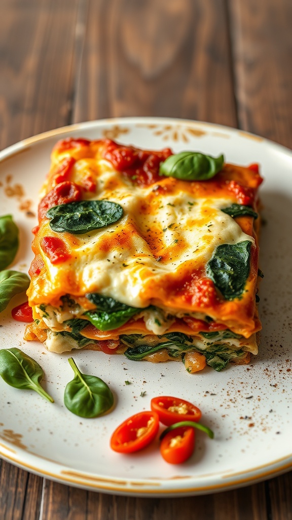 This Vegetable Lasagna with Ricotta and Spinach is a delightful twist on the classic dish. Layers of tender pasta, creamy ricotta, and fresh spinach come together to create a dish that’s both comforting and nutritious. The rich tomato sauce adds a vibrant flavor, making each bite satisfying and full of freshness.
