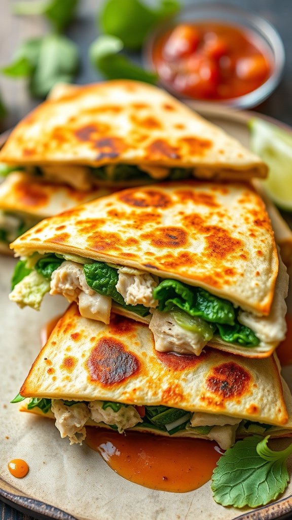 Pesto Chicken and Spinach Quesadillas