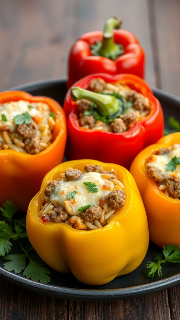 - Let cool slightly before serving. Enjoy your delicious sausage-stuffed bell peppers!