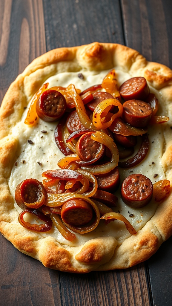 - Serve: Remove from the oven, let cool briefly, slice, and enjoy your delicious sausage and caramelized onion flatbread!