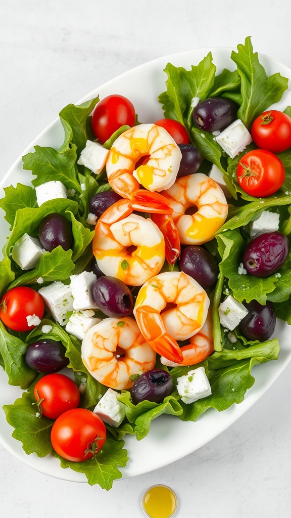 - Prepare the Salad Base: In a large salad bowl, combine the mixed greens, cherry tomatoes, olives, and feta cheese.