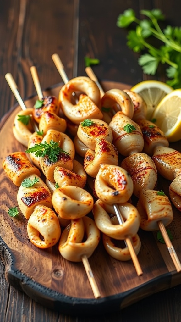 Grilled Garlic Lemon Squid Skewers