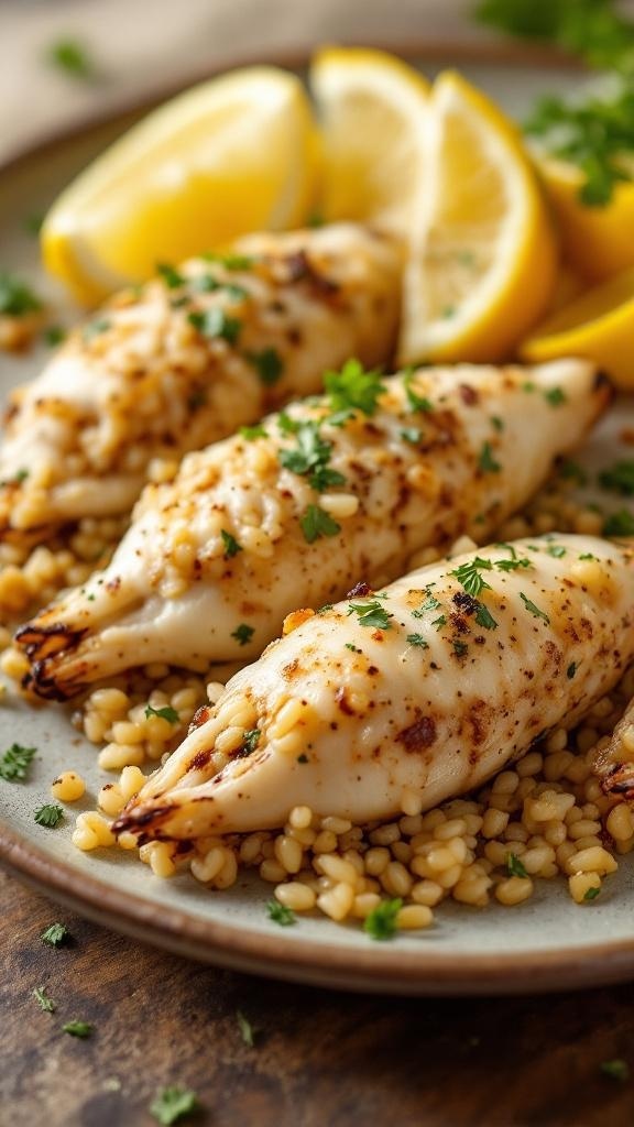 - Remove from the grill, garnish with fresh parsley, and serve with lemon wedges.