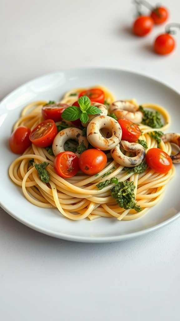 This pesto pasta with grilled squid is a delightful dish that brings fresh flavors to your table. The tender squid pairs perfectly with the vibrant pesto and juicy cherry tomatoes, making every bite a treat. It’s an easy recipe that impresses without much fuss!