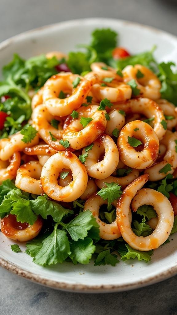 This Sesame Soy Glazed Squid Salad is a light and tasty dish that’s perfect for any meal. The tender squid pairs wonderfully with the rich sesame soy dressing, making each bite a delight. Toss in some fresh greens for a refreshing crunch!