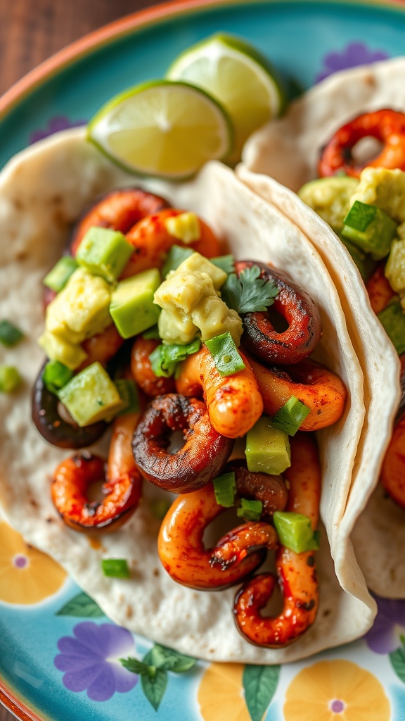 Spicy Grilled Squid Tacos with Avocado Salsa