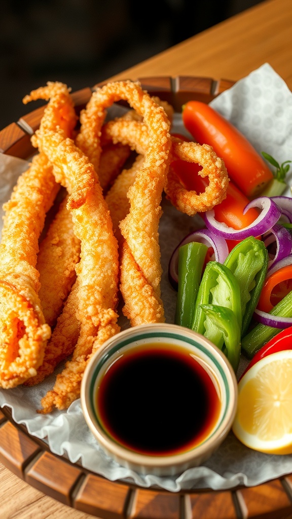 Squid and vegetable tempura is a fun dish that’s crispy and light. The combination of tender squid and fresh veggies makes for a tasty treat. Serve it with a dipping sauce for a delightful snack or appetizer!