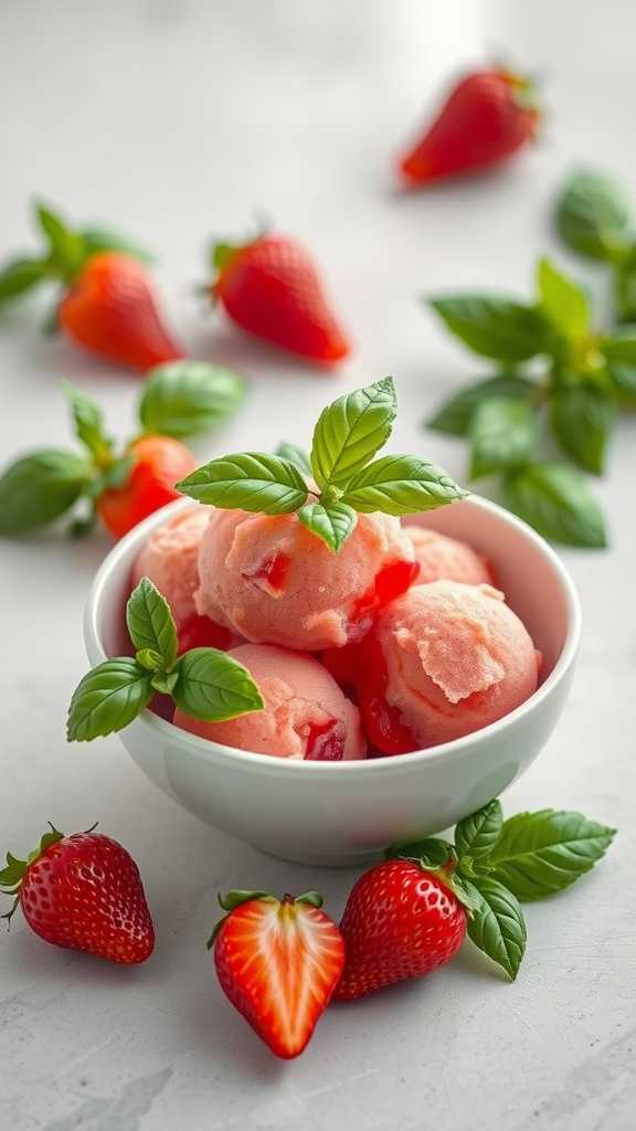Strawberry and Basil Sorbet in a Bowl