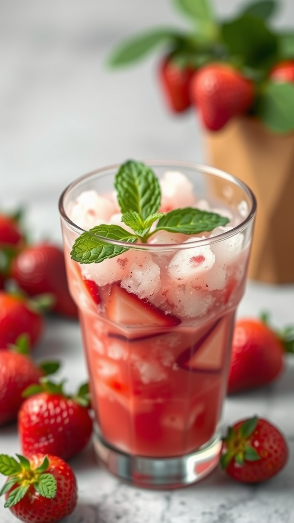 - Serve: Pour the slushie into a bright cup and garnish with fresh mint leaves and slices of strawberries.