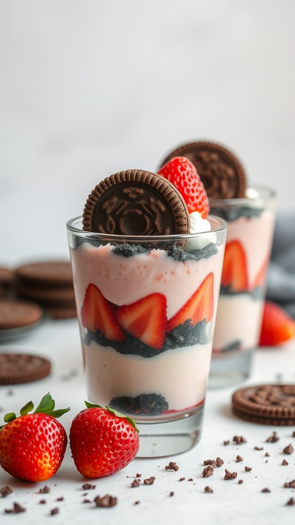 - Layer the Dessert: In serving glasses or bowls, layer the sweetened strawberries, whipped cream, and crushed cookies. Repeat the layers until the glasses are full.