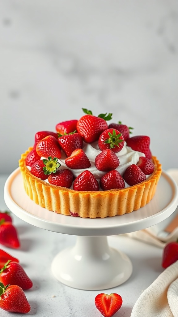 Strawberry Pavlova is a delightful dessert that combines a crisp meringue shell with a light and fluffy whipped cream topping, all crowned with fresh strawberries and mint. The contrast of textures between the crunchy outside and the soft inside is simply lovely, while the sweet-tart strawberries provide a refreshing balance. It’s an easy-to-make treat that’s perfect for any occasion, whether it’s a family gathering or a summer picnic.