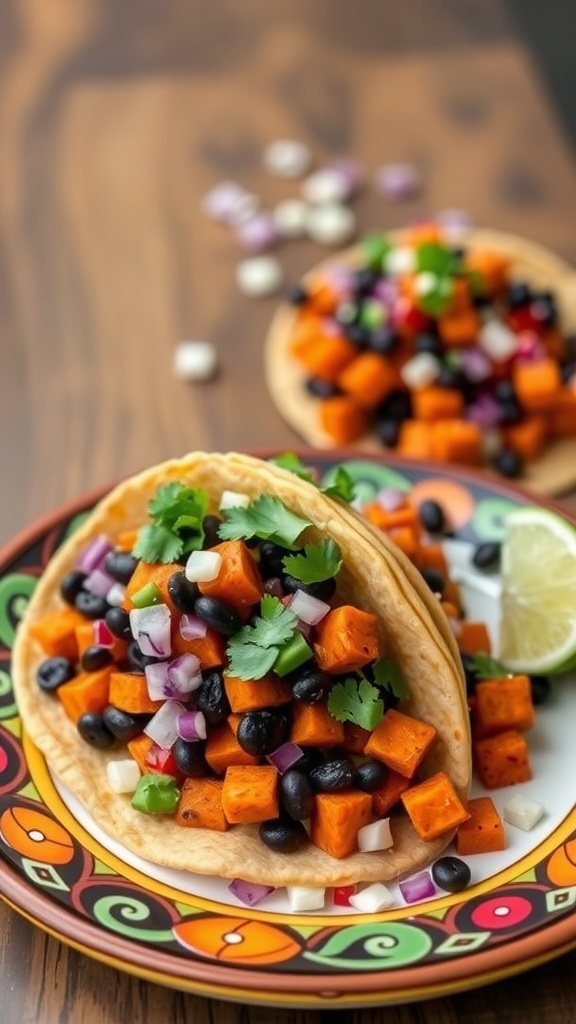 - Assemble the Tacos: Warm the corn tortillas in a skillet or microwave. Layer the roasted sweet potatoes and black beans onto each tortilla.