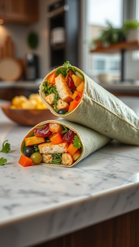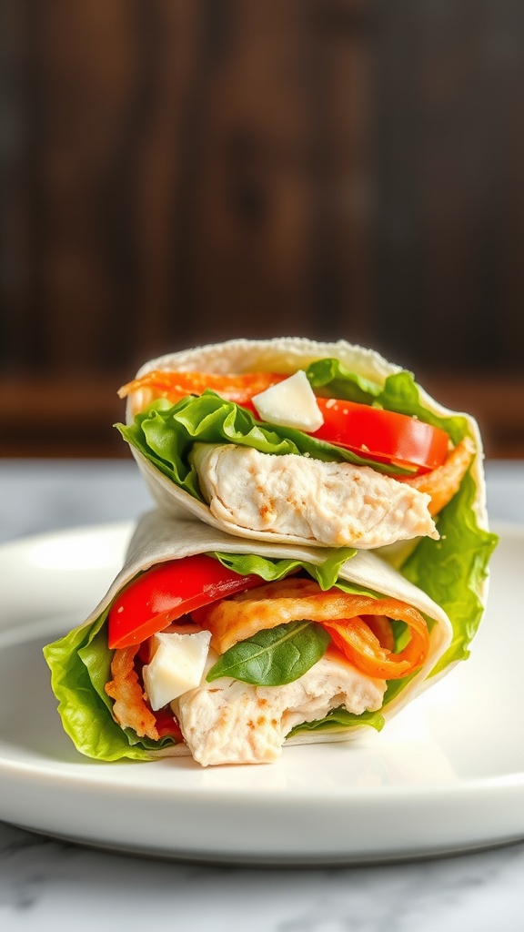 - Serve: Cut the wrap in half and arrange it on a plate. Garnish with halved cherry tomatoes and fresh basil leaves for a pop of color.