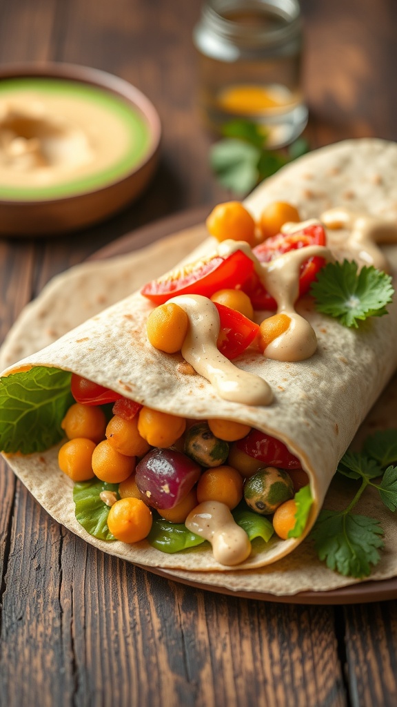 The combination of chickpeas and fresh veggies not only makes this wrap tasty but also nutritious. Chickpeas are packed with protein and fiber, while the greens and tomatoes provide essential vitamins. It’s a perfect meal for lunch or a light dinner.