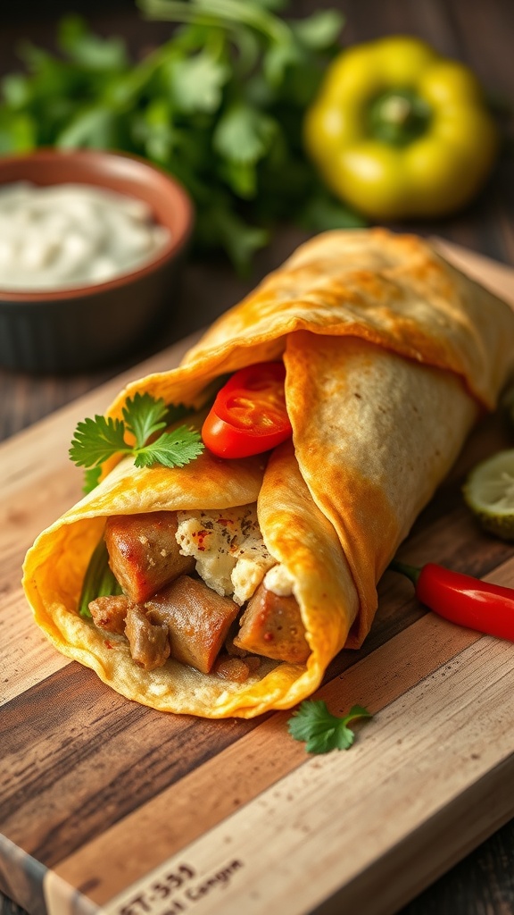 - Wrap It Up: Fold the sides of the tortilla over the filling and roll tightly from the bottom up.
