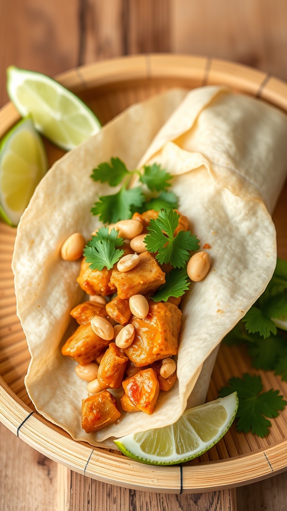 - Assemble the Wraps: Lay a tortilla flat, place a generous amount of the chicken mixture in the center, and sprinkle with chopped peanuts.